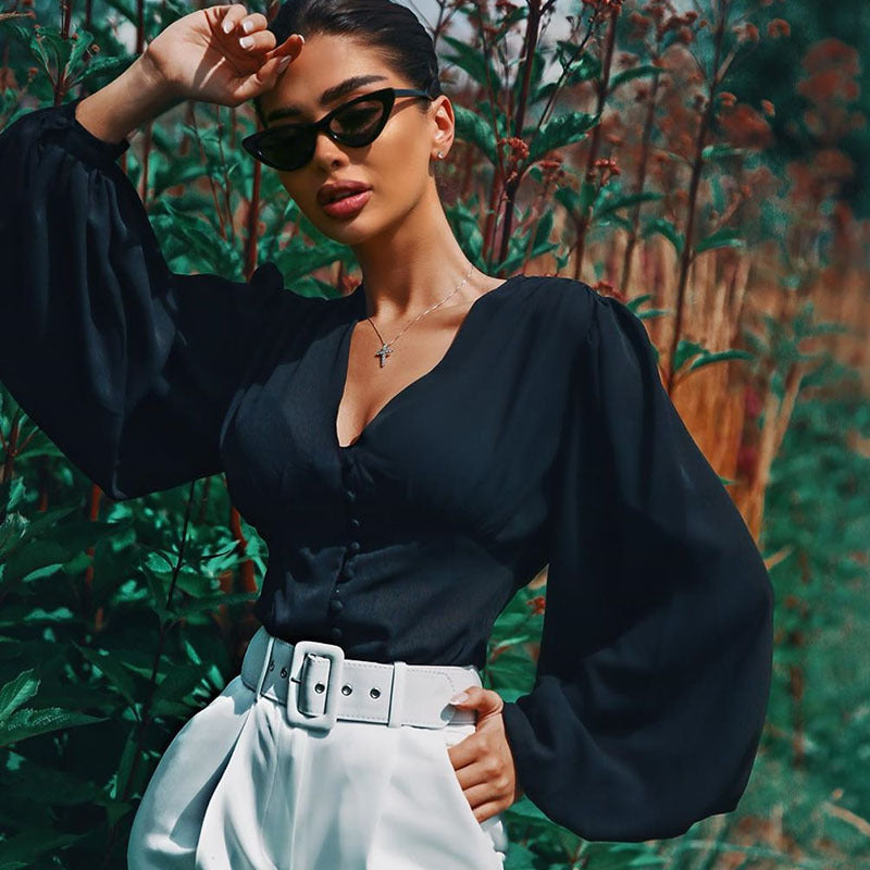 Ontdek Noor’s - Vrouwen V-Hals Longsleeve Top met Knopen